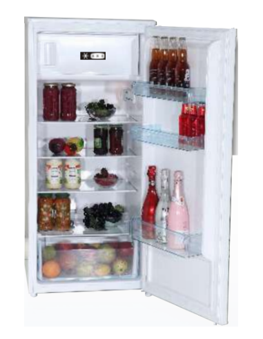 Aparatos de uso no intensivo. Visualización de temperatura digital por pantalla LED; ruedas traseras para mejor maniobrabilidad. El frigorífico incluye cuatro estantes y el congelador, siete fijos. Sin CFC.