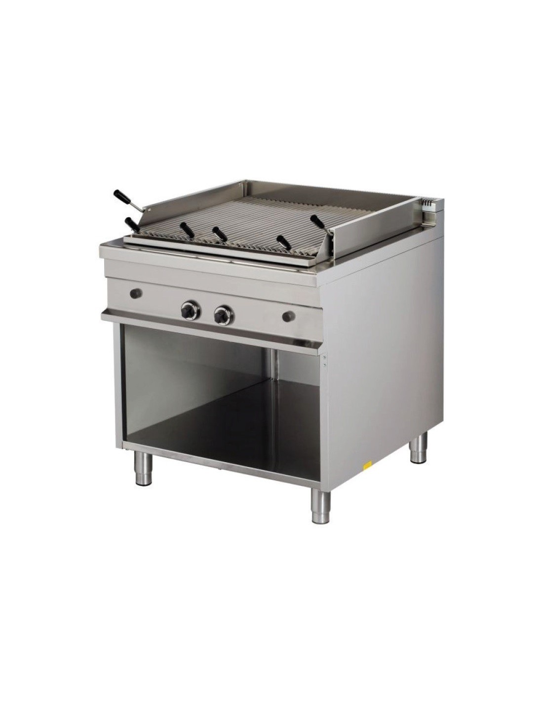 Uso con piedra volcánica. Bandeja recogegrasas en acero inoxidable. Equipado con un quemador tubular de alto rendimiento para una distribución uniforme del calor, válvula termostática y llama piloto. Dotado de termopar de seguridad. Sistema de encendido por piezoeléctrico. Se suministra predispuesta para gas natural y se proporcionan inyectores para cambios a gas propano/butano.
