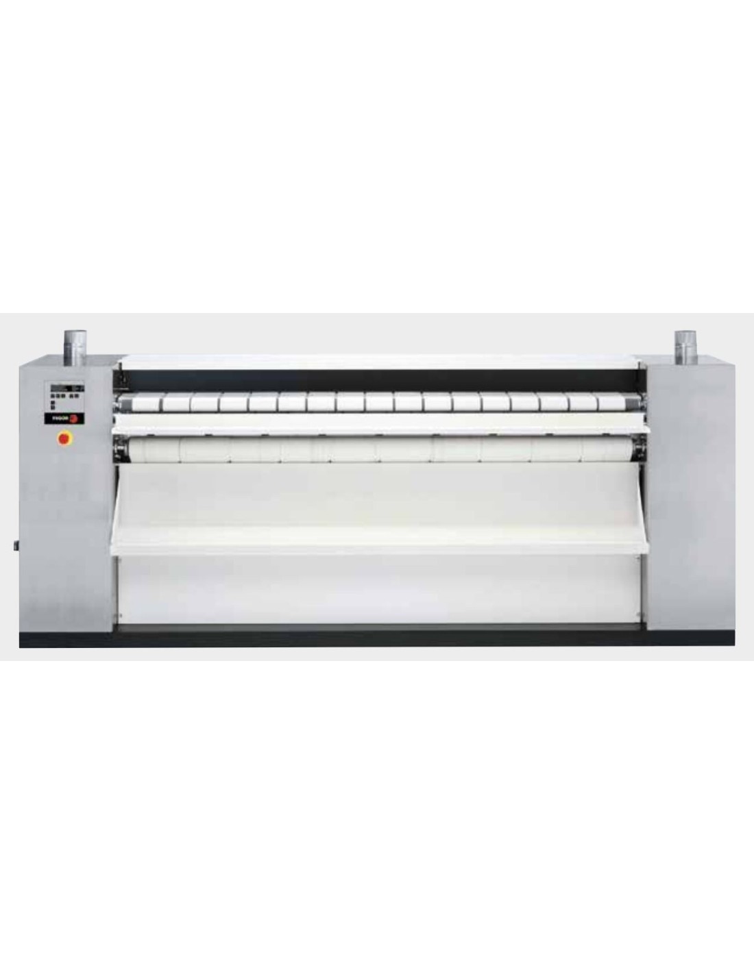 - Introducción y recepción de prendas frontal. - Variador de frecuencia para controlar velocidad de planchado. - 7 velocidades de planchado regulables por vacriador de frecuencia, entre 1,5 y 8 m/ minuto. - Microprocesador electrónico (control de velocidad y temperatura, autoapagado). - Protector de seguridad para las manos. - Sistema de parada automática por enfriamiento (80 ºC) - Mueble exterior en skin plate y acero inoxidable. - Potente sistema de extracción de vahos. - Bandas de introducción y de planchado en Nomex para facilidad de trabajo, alta calidad de planchado y gran durabilidad. - Versiones de calentamiento eléctrico, a gas y vapor.