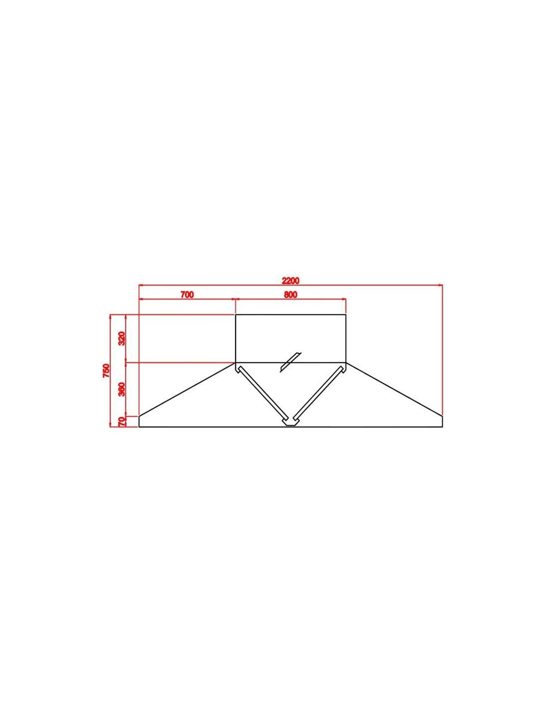 Campana central 2200x2200x750 mm sin turbina