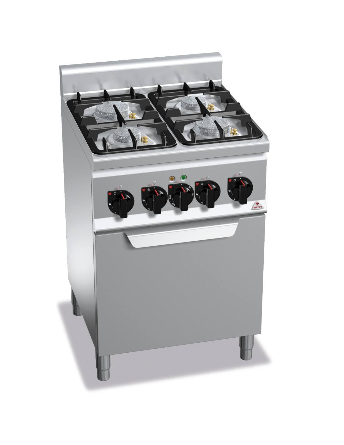 Cocina de 4 fuegos a gas + horno eléctrico 600x600x900mm Plus600 Bertos