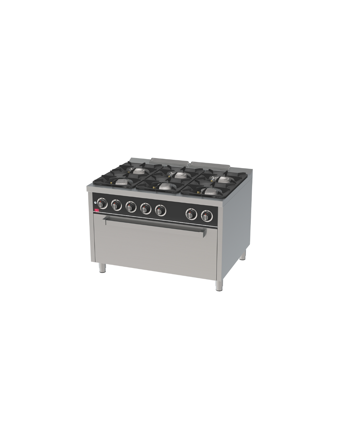 Cocina BASIC a gas 6 fuegos 46 Kw + horno serie 750 1200 x 750 x 880 mm Fainca HR