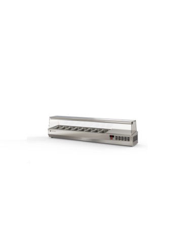 Expositor ingredientes 1/3 GN 7 Cubetas Cúpula de cristal 1795x396