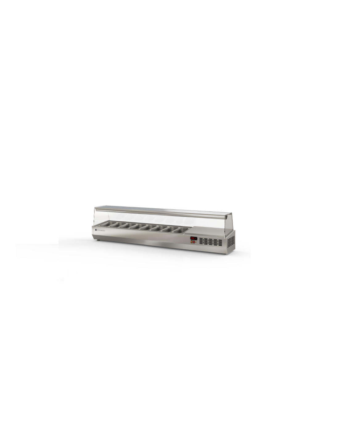 Expositor ingredientes 1/3 GN 10 Cubetas Cúpula de cristal 2245x396