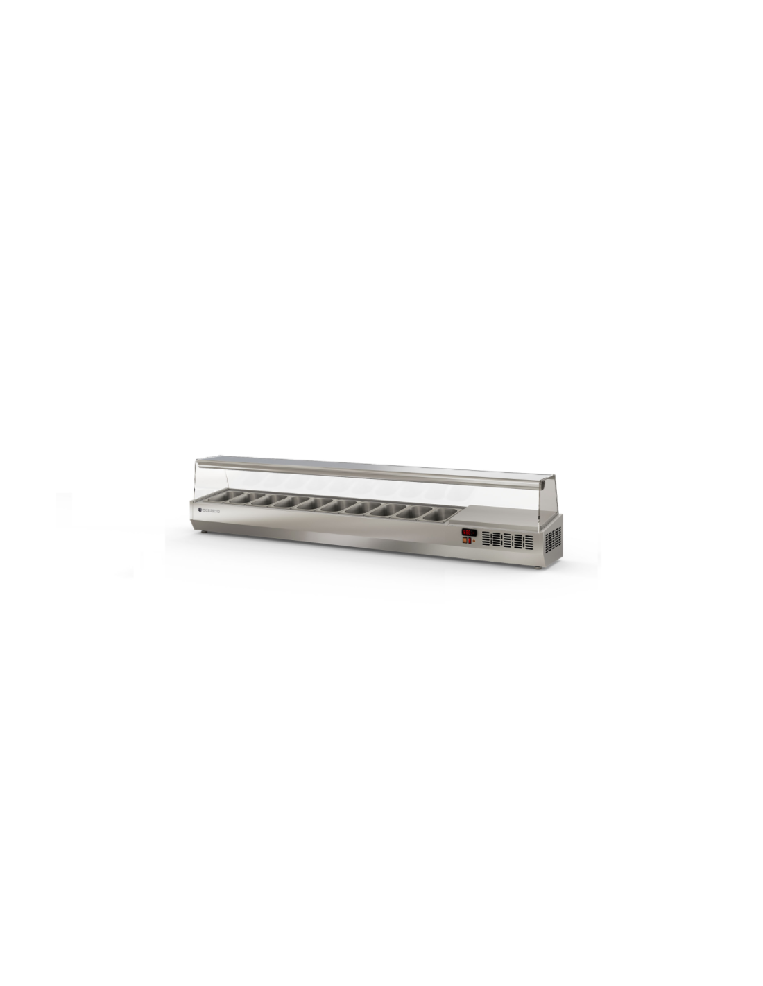 Expositor ingredientes 1/3 GN 11 Cubetas Cúpula de cristal 2545x396