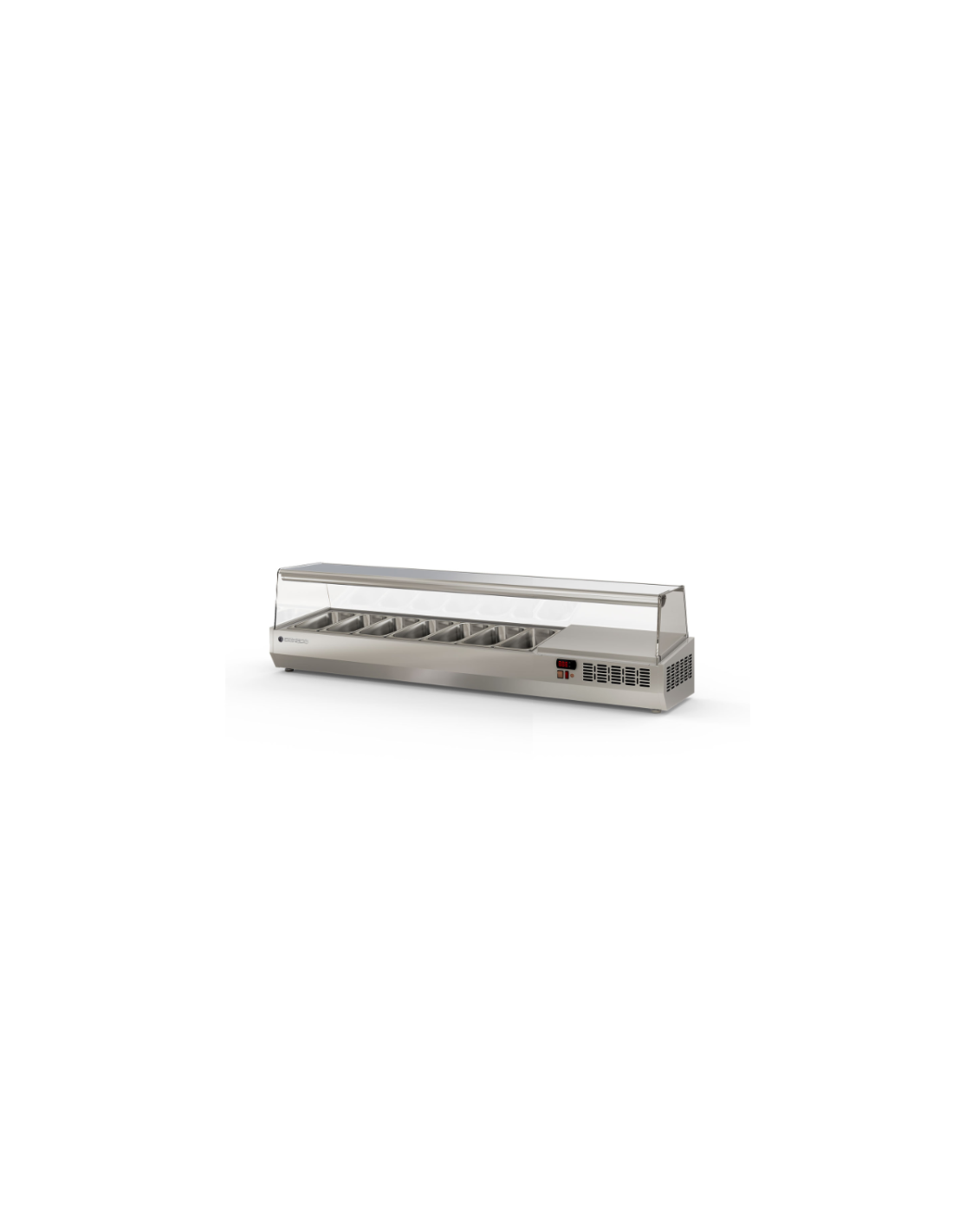 Expositor ingredientes 1/4 GN 8 Cubetas Cúpula de cristal 1795x336
