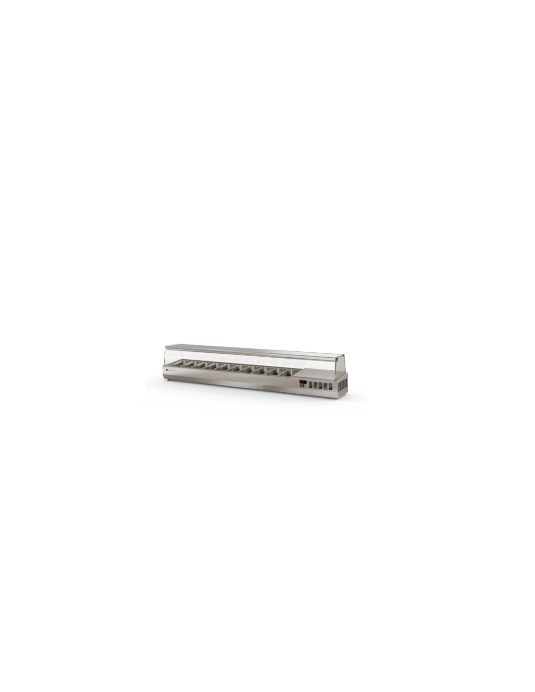 Expositor ingredientes 1/3 GN 10 Cubetas Cúpula de cristal 2245x396