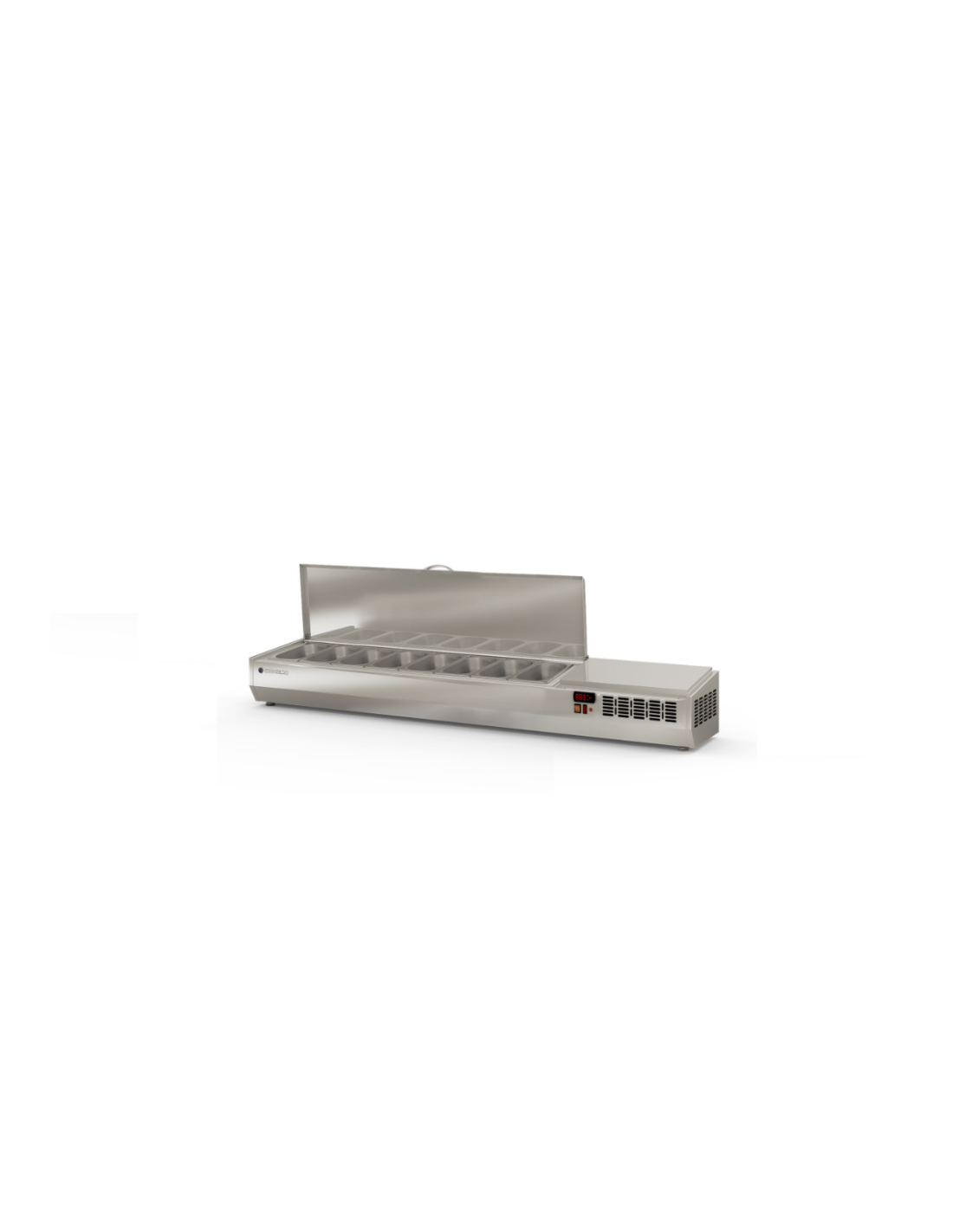 Expositor ingredientes 1/4 GN 8 Cubetas Cubierta inox abatible 1795x336