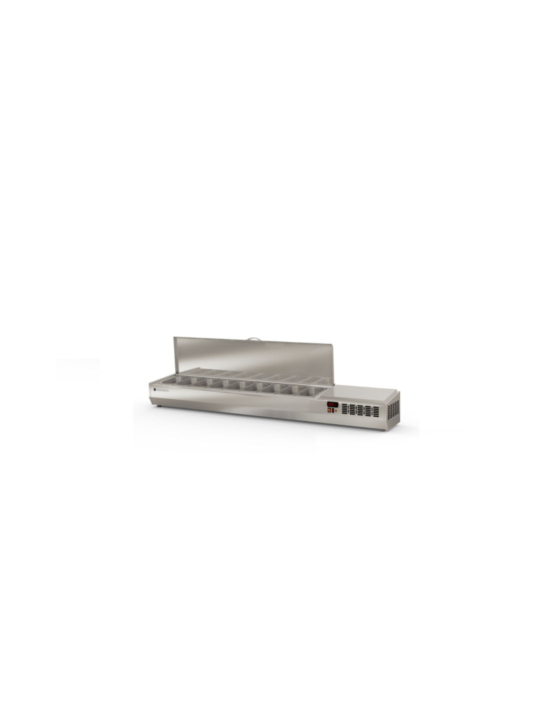 Expositor ingredientes 1/3 GN 10 Cubetas Cubierta inox abatible 2245x396
