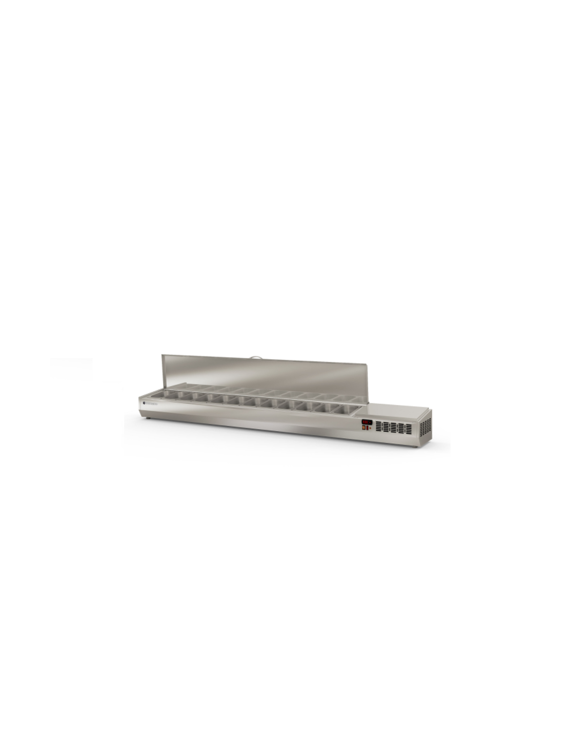 Expositor ingredientes 1/3 GN 11 Cubetas Cubierta inox abatible 2545x396