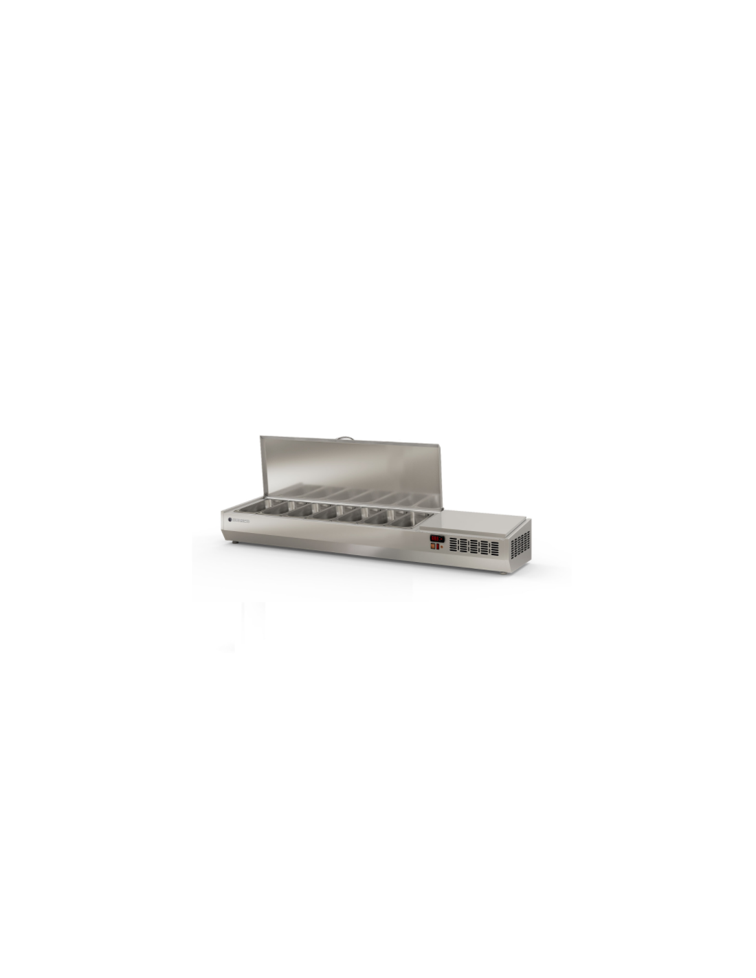 Expositor ingredientes 1/3 GN 8 Cubetas Cubierta inox abatible 2020x396