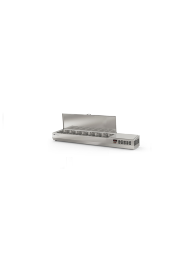 Expositor ingredientes 1/3 GN 11 Cubetas Cubierta inox abatible 2545x396