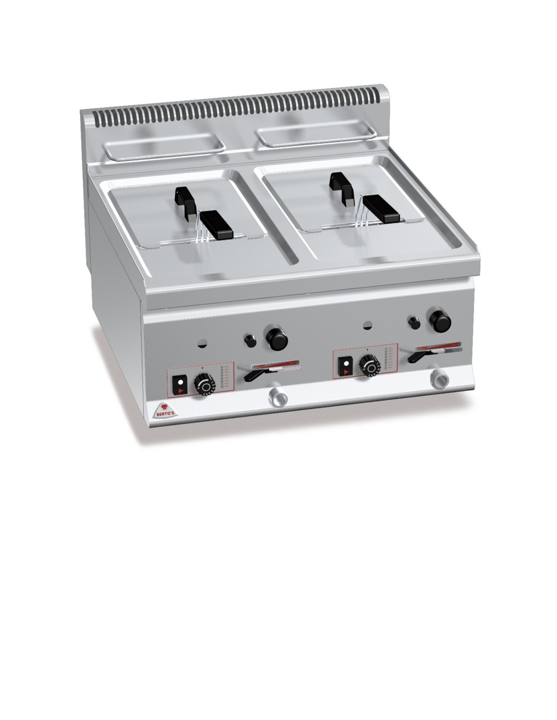 Producción máxima por hora estimada 19,2 kg. Tiempo medio de freído 5 minutos. Precalentamiento 15 minutos (de 20 a 190°C). Encendido piezoeléctrico con protección de silicona