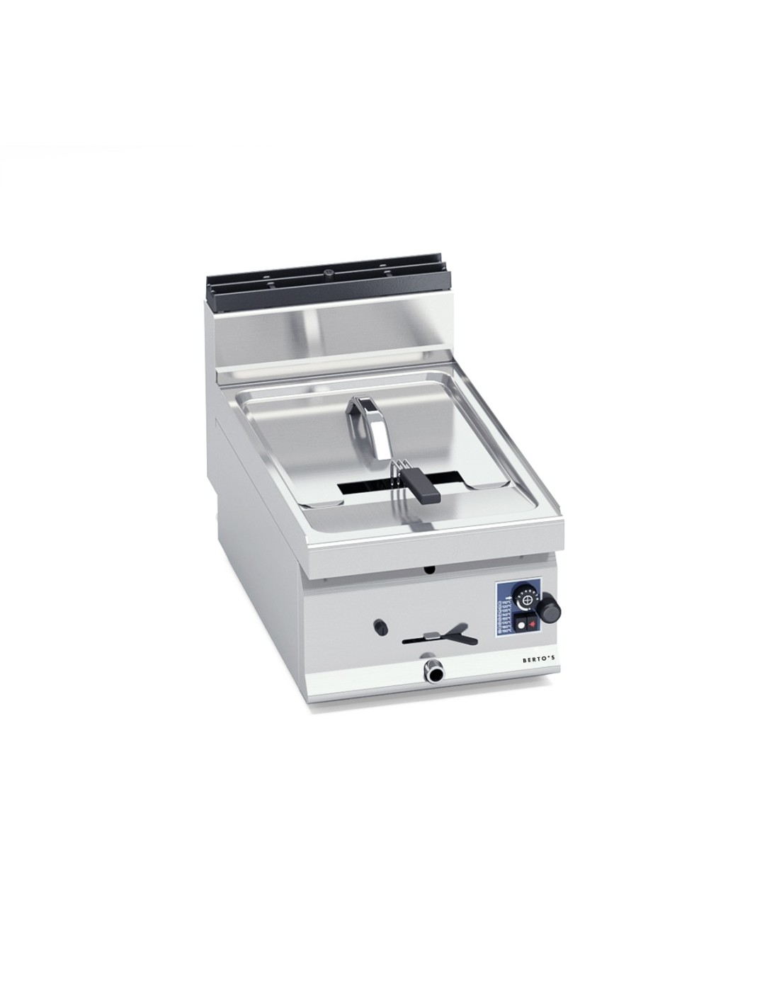 Capacidad del tanque 10 L. Producción máxima horaria estimada 12 kg. Tiempo medio de fritura 5 minutos. Precalentamiento 10-7 minutos (de 20 a 190°C).