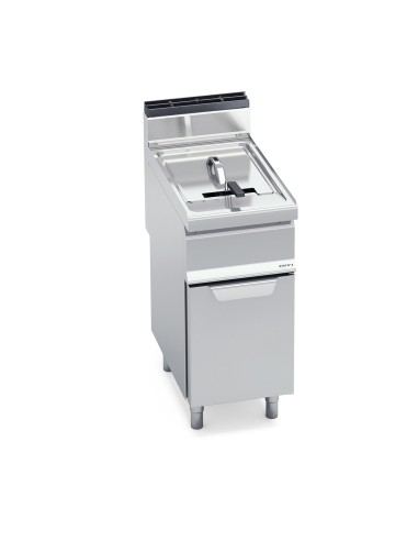 Regulación de la temperatura con 7 posiciones de 110 a 190°C. Capacidad del tanque 20+20L Producción máxima horaria estimada 25 kg.