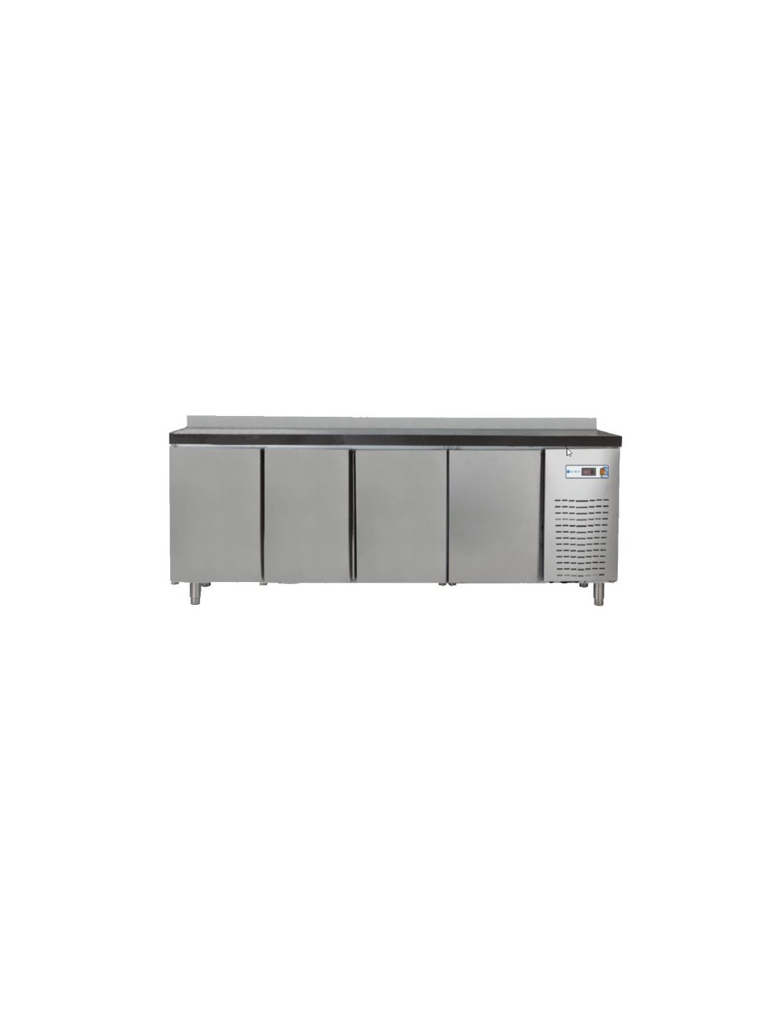 Mesa refrigerada frente mostrador serie 600, con 3 o 4 puertas a elegir más un cajón neutro con tirador incorporado y evaporador compacto de tiro forzado.