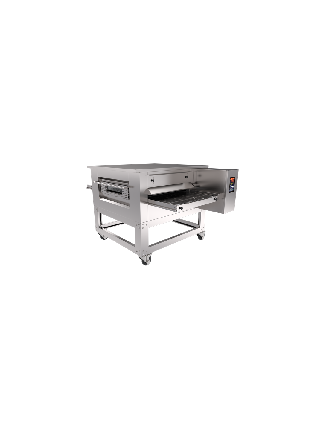 El horno de túnel ventilado esta dotado de una cinta transportadora que desplaza el alimento por el interior del horno en un tiempo determinado.