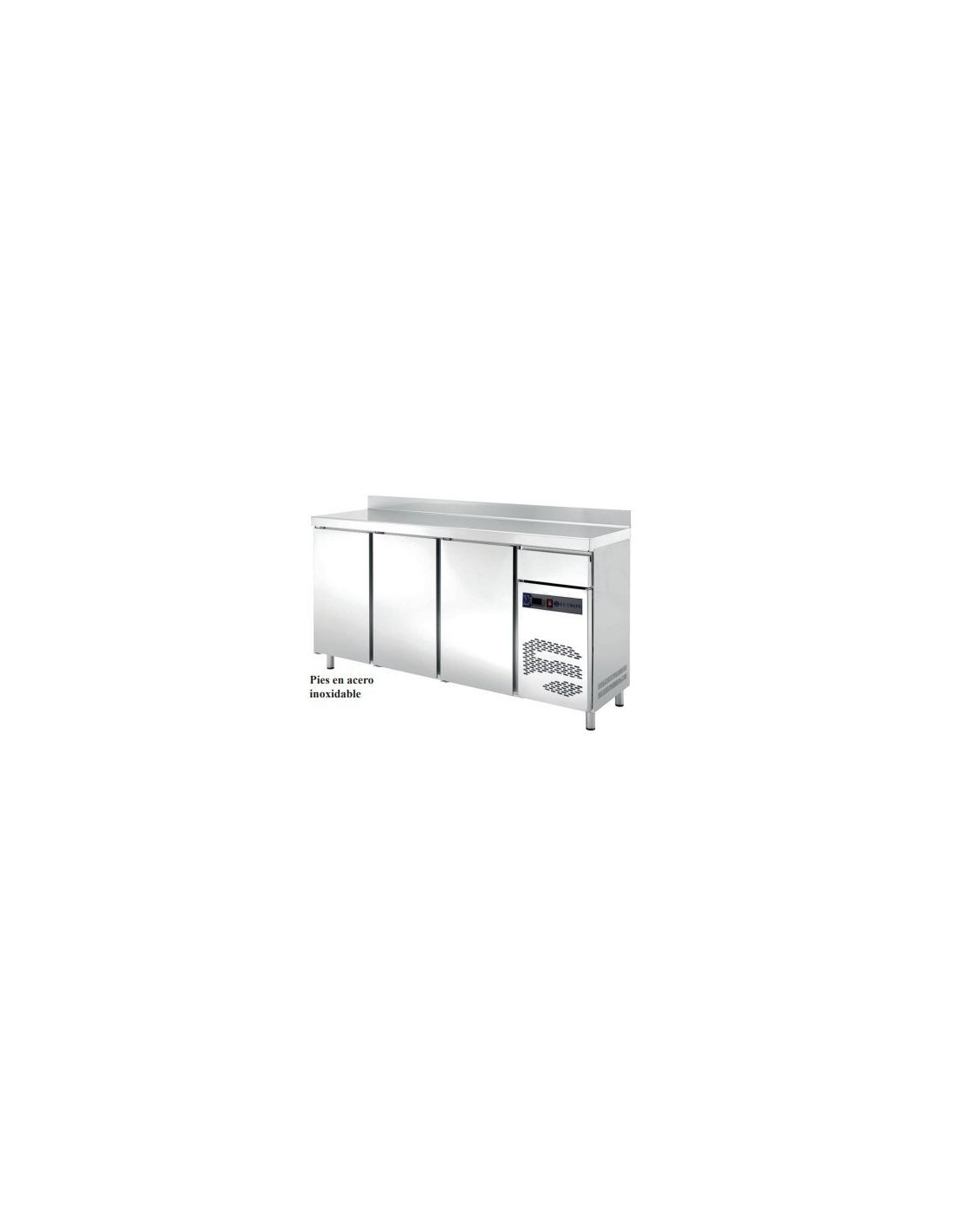 • Encimera en acero inoxidable con acabado satinado, con canto delantero curvo y peto trasero sanitario de 100 mm.