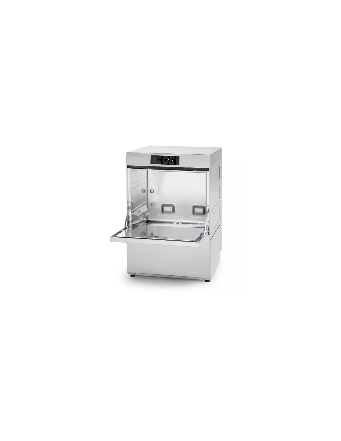 Lavavasos profesional Sammic AX‑40, cesta de 400 × 400 mm y altura útil de 300 mm. Potencia de 2,75 kW (bomba + cuba + calderín). Modelo compacto con funciones avanzadas para hostelería.