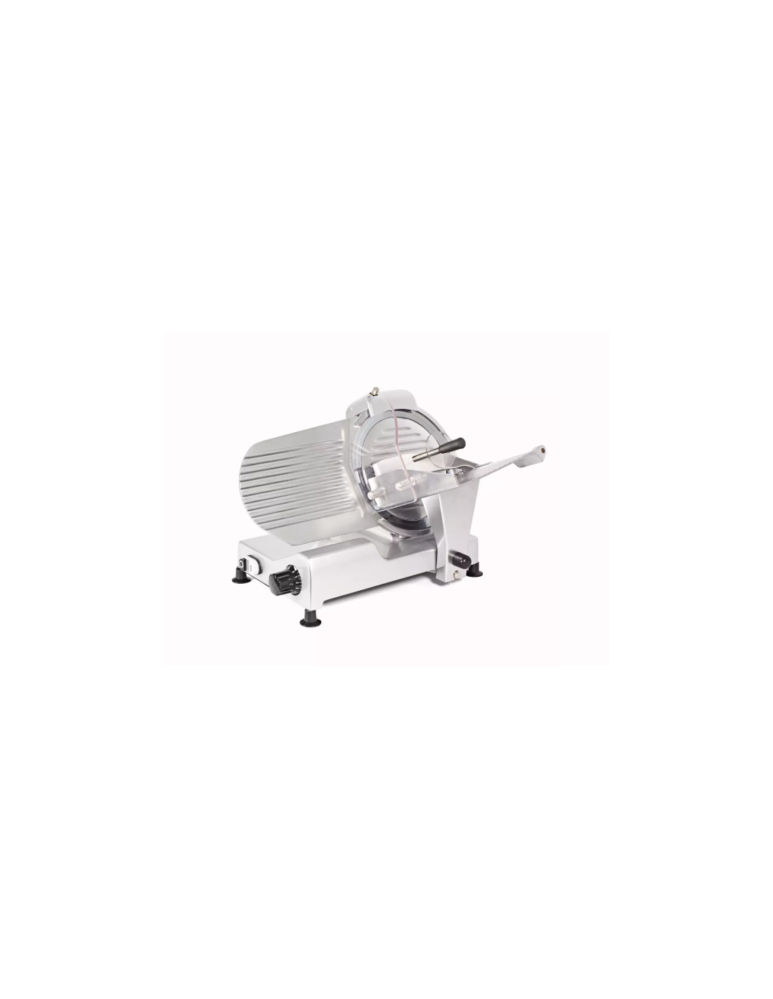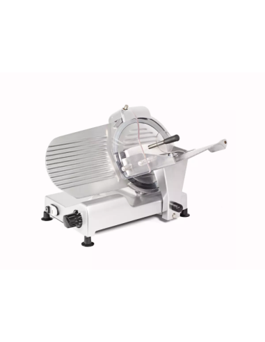 Cortadora de fiambre profesional Sammic GSS-250, con cuchilla de Ø 250 mm. Capacidad de corte de 160 × 210 mm, espesor regulable de 0 a 15 mm y recorrido del carro de 235 mm. Transmisión por correa y potencia de 160 W. Ideal para carnicerías, charcuterías y cocinas profesionales.