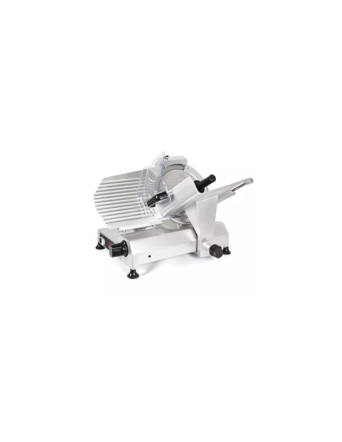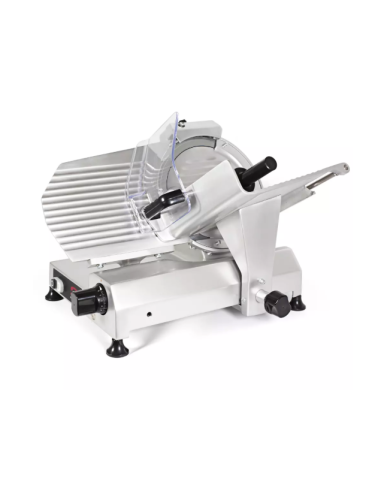 La GSL-300 de Sammic es una cortadora de fiambre de gran capacidad, diseñada para uso profesional en charcuterías, carnicerías y cocinas exigentes. Fabricada en aleación de aluminio anodizado higiénico y anticorrosivo, ofrece cortes precisos y uniformes incluso en productos de gran tamaño. Incorpora transmisión por correa que reduce el ruido y las vibraciones, anillo protector de cuchilla, bloqueo del carro, motor ventilado y afilador de montaje sencillo. Su plato se desplaza sobre casquillos y rodamientos autolubricantes que garantizan suavidad y durabilidad. Los puntos de agarre desmontables facilitan la limpieza. Incluye placa electrónica de seguridad e interruptor doble luminoso a 24 V para una mayor protección del usuario.