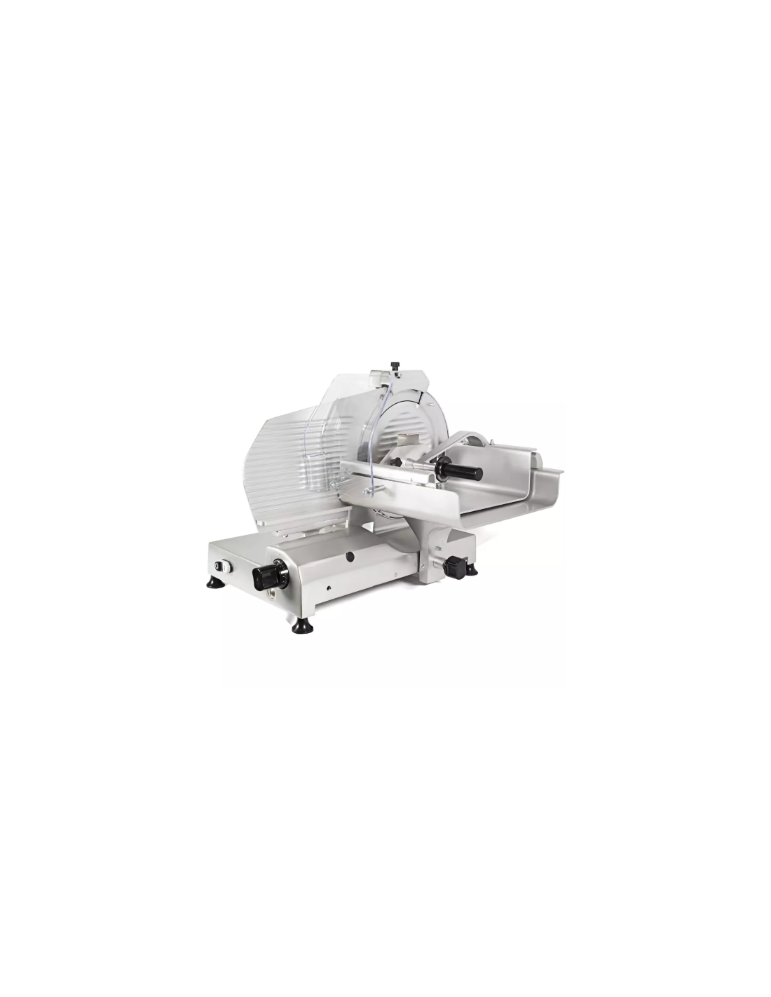 La VML-350 de Sammic es una cortadora vertical de correa especialmente diseñada para carne fresca, con posición vertical para aplicación universal. Fabricada en aluminio pulido protegido contra oxidación, incorpora afilador integrado, cuchilla universal con relieve, anillo de protección contra agua y grasa, y ajuste decimal de espesor. Su base montada sobre rodamientos y la correcta separación entre la caja y la cuchilla facilitan la limpieza. Dispone de bloqueo del carro, interruptor doble luminoso 24 V y placa de seguridad electrónica.