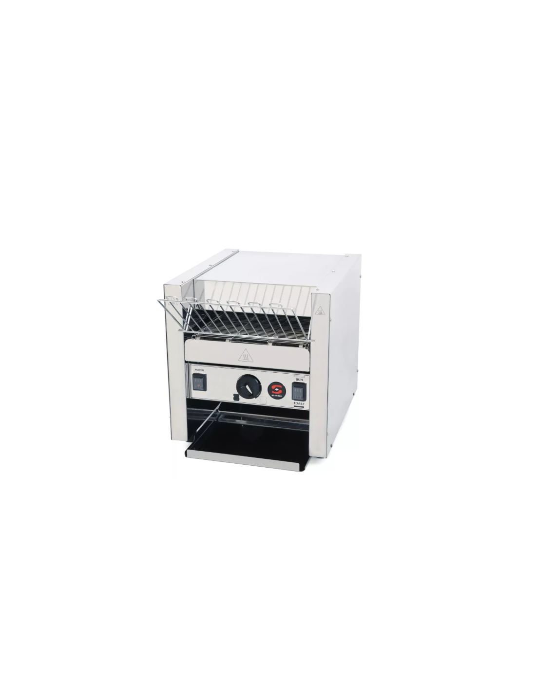 Tostadora conveyor profesional Sammic ST-22, cinta de 250 mm, producción máxima hasta 600 tostadas/hora. Ideal para buffets y entornos con alta demanda en poco espacio.