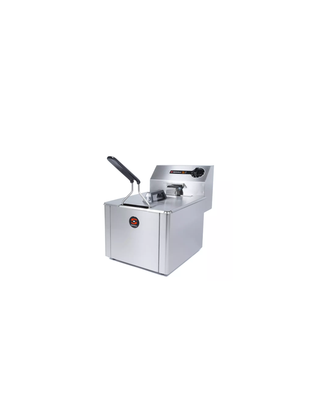 La PF-6 es una freidora de sobremesa con cuba extraíble y zona fría que prolonga la vida útil del aceite. Dispone de cabezal móvil para facilitar la limpieza, termostato regulable y termostato de seguridad con rearme manual. Su estructura en acero inoxidable y la protección de las resistencias permiten un uso profesional y un mantenimiento sencillo.