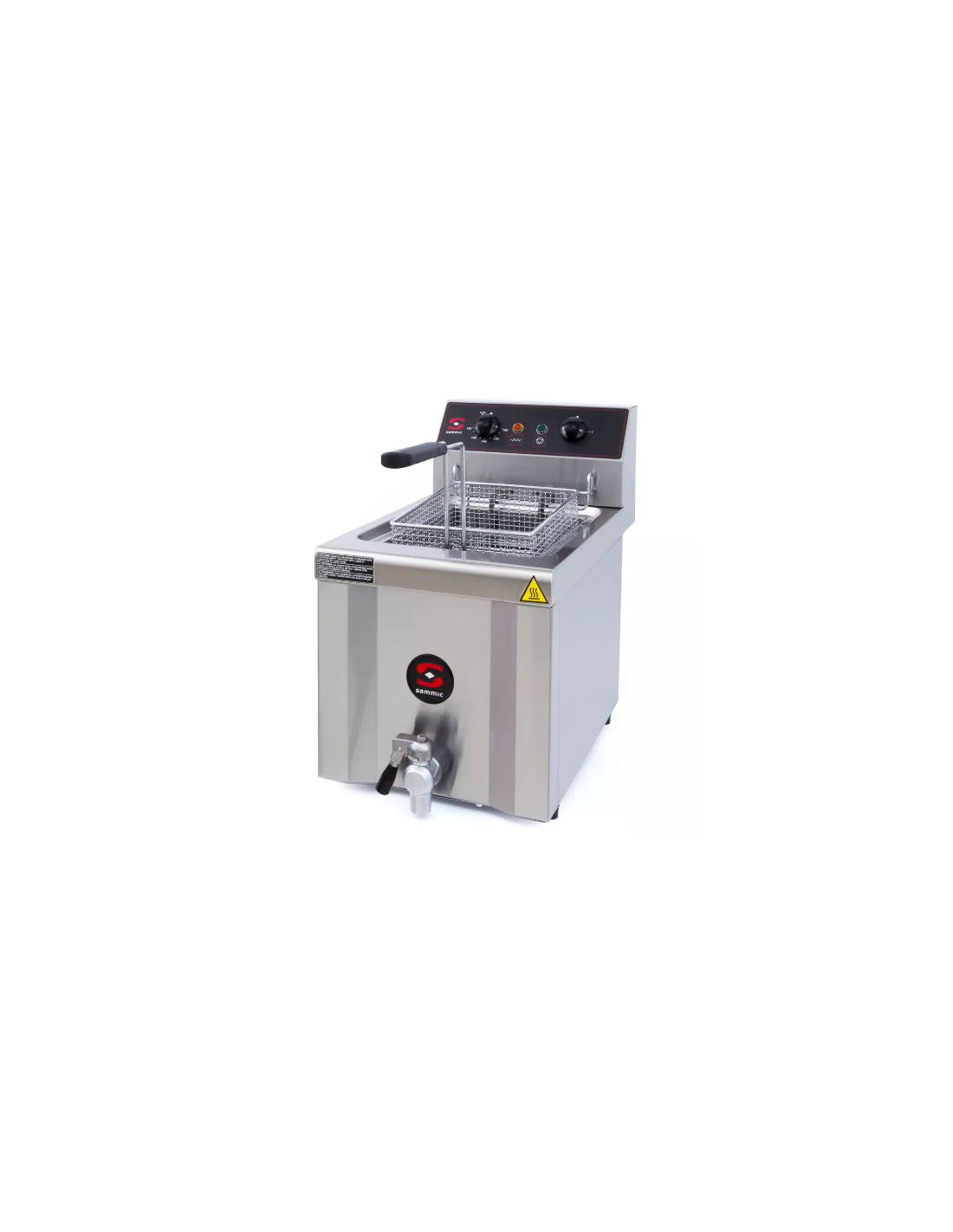 Freidora eléctrica Sammic FE-8, cuba soldada de 8 litros, potencia de 3.000 W. Modelo monofásico de sobremesa, provista de termostato regulable y termostato de seguridad.