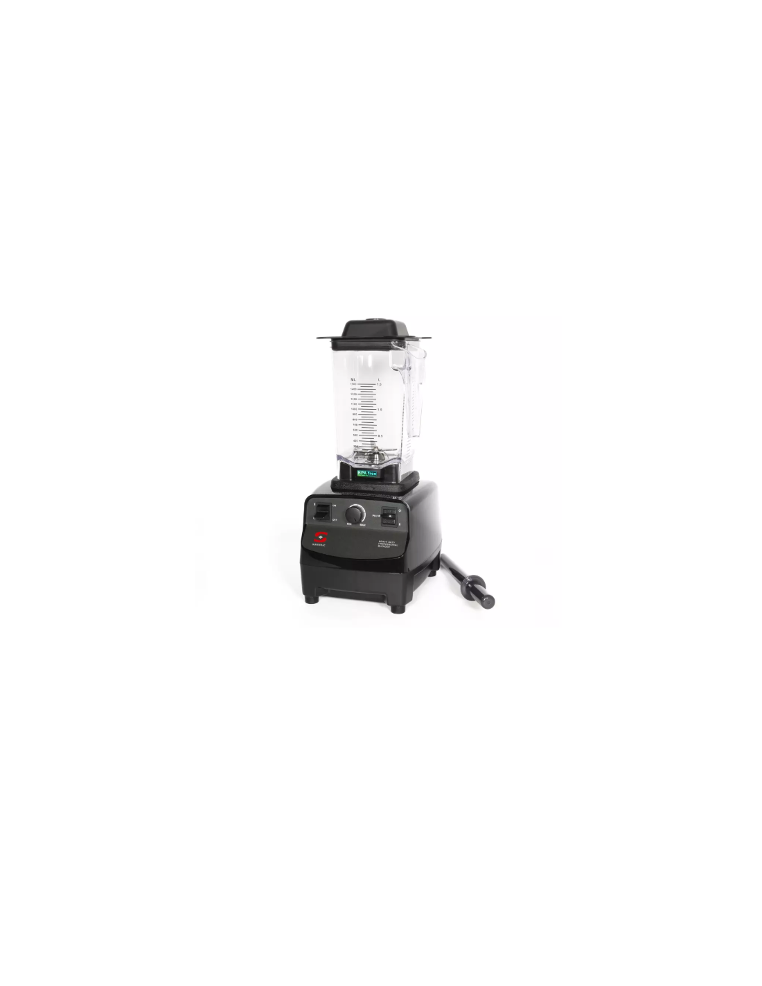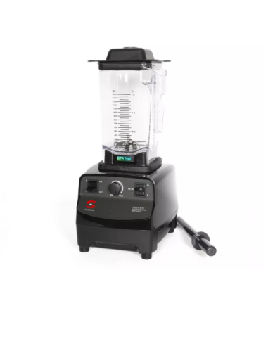 Triturador o batidora de vaso profesional Sammic TB-1500, con vaso de policarbonato de 1.5 litros de capacidad. Tiene una potencia de 1.200 W y una velocidad máxima de 28.000 rpm. Cuenta con velocidad variable y función pulse para un triturado fino.