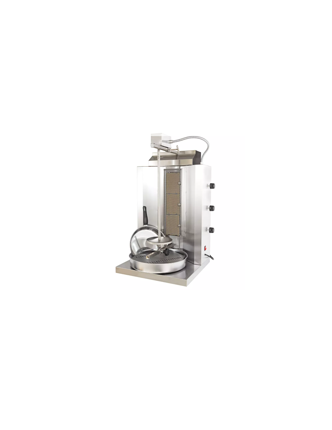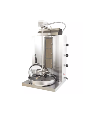 El Asador Kebab AG-20 es un equipo profesional de gas diseñado específicamente para cocinar carne de kebab o gyros. Cuenta con tres quemadores verticales y tiene una capacidad de carga de hasta 20 kg. Su diseño prioriza la seguridad y la durabilidad, incluyendo un motor montado en la parte superior para evitar el goteo de grasa y válvulas termomagnéticas independientes para un control total del calor. Es ideal para negocios de comida rápida, take away o restaurantes especializados.
