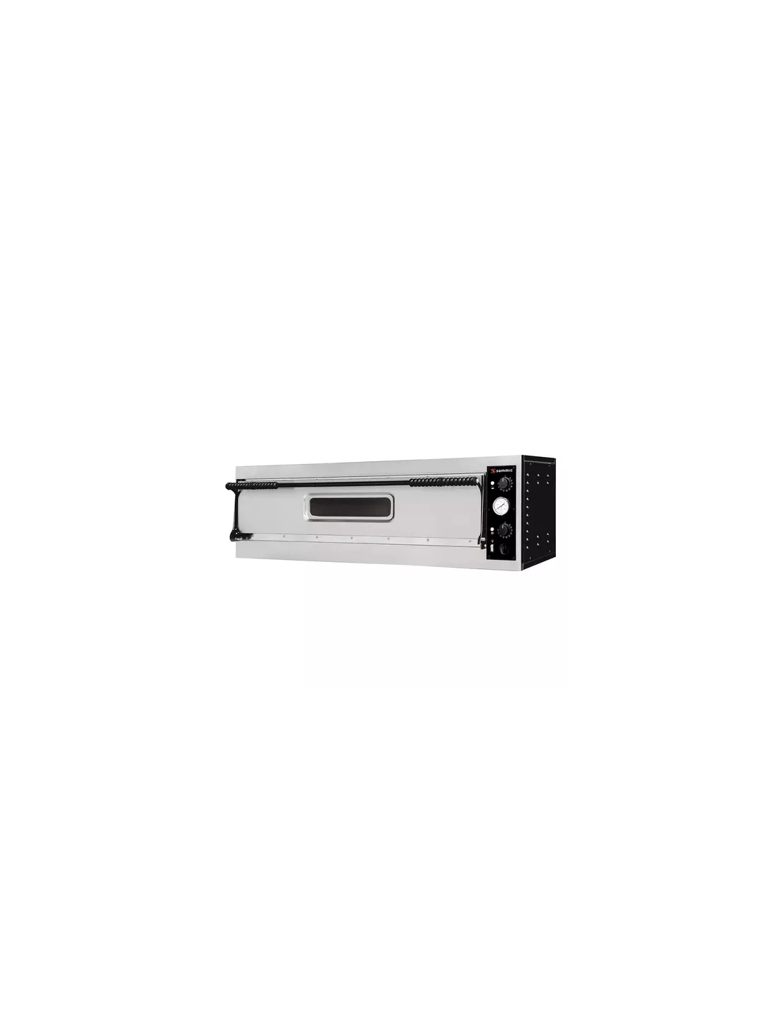 El Horno Pizza PO-6W es un horno de cámara única y gran anchura, diseñado para hornear hasta seis pizzas de con una puerta de acceso más amplia que los modelos estándar. Esta característica de "Puerta Ancha" () mejora la ergonomía y la velocidad de carga/descarga. Con una potencia de 9.0 kW y la capacidad de alcanzar hasta 500 ºC, está pensado para cocinas que necesitan alta capacidad de producción en una sola capa de cocción, priorizando la facilidad de manejo de las pizzas.