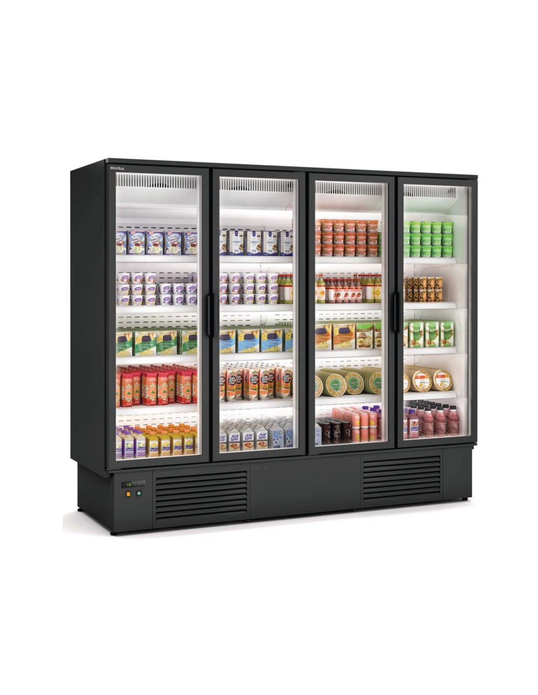 El EFIL 4R es un mueble vertical robusto y de gran envergadura (2567 mm de largo). Cuenta con cuatro puertas batientes sin marco y un frontal completo de cristal, maximizando la visibilidad del producto. Las puertas incluyen un sistema de cierre automático y burlete magnético.