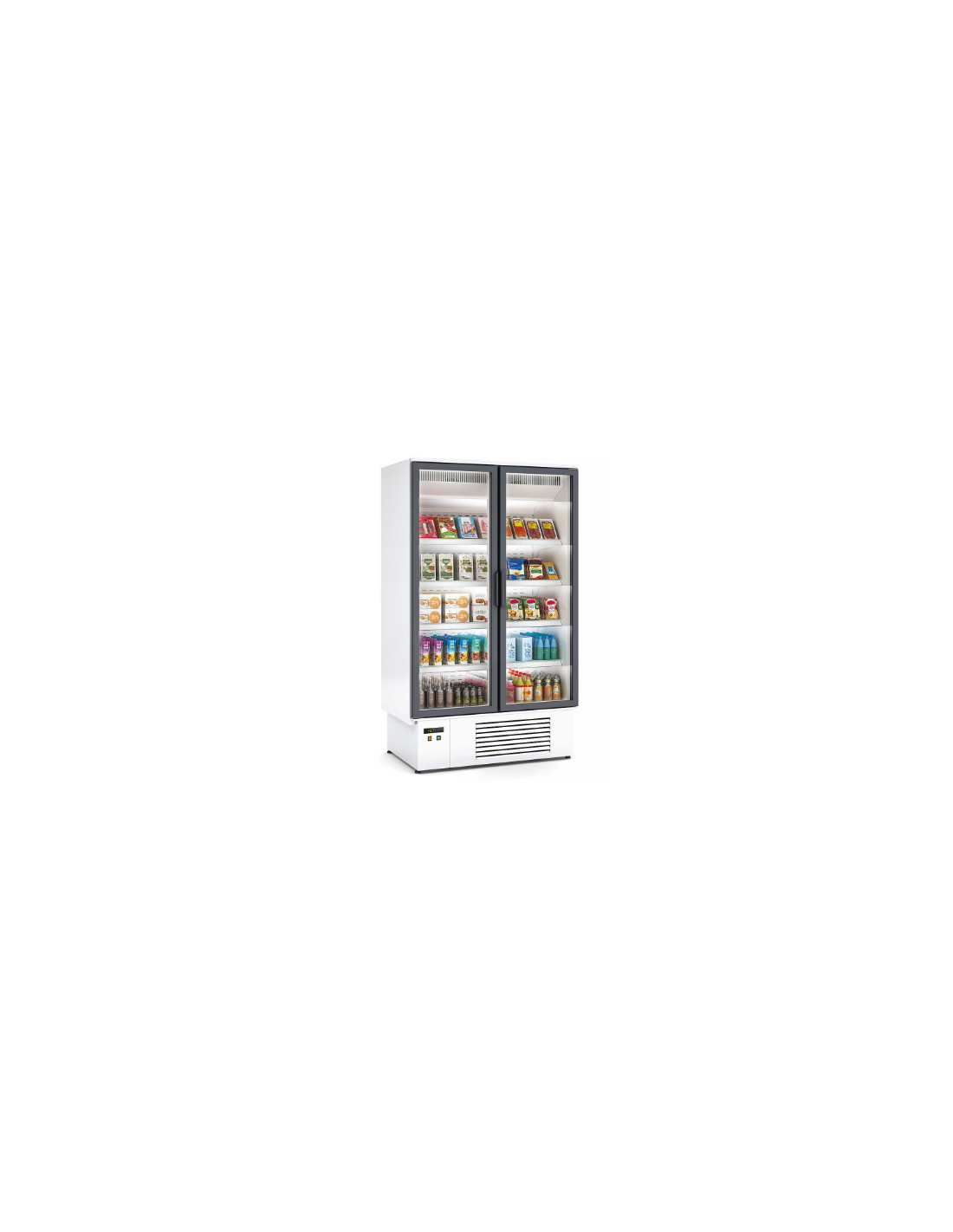 Este mueble vertical de dos puertas es ideal para optimizar la capacidad y visibilidad de los productos congelados. Cuenta con dos puertas batientes sin marco y un frontal totalmente acristalado para el máximo impacto visual.