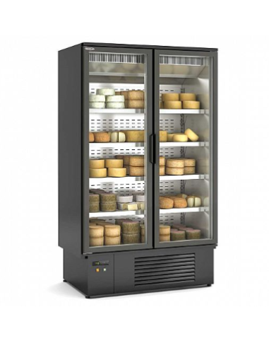 Este mueble vertical de dos puertas pertenece a la línea Efimarket y está optimizado para la presentación de quesos y productos lácteos. Sus dos puertas batientes sin marco con frontal de cristal garantizan la máxima visibilidad.