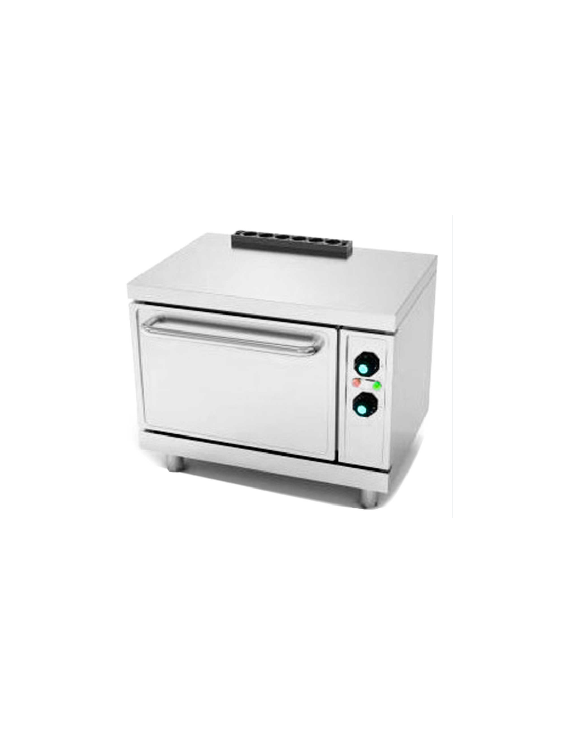 Este equipo, típicamente fabricado en acero inoxidable (como parte de una Serie 600 EV), es un horno de tipo monobloque. Se utiliza para hornear, gratinar o mantener alimentos calientes. Su diseño se enfoca en la limpieza fácil gracias a sus cantos redondeados y guías embutidas en el interior. Su conexión eléctrica es trifásica (400 V) y ofrece un volumen interior capaz de alojar la bandeja estándar más grande ().