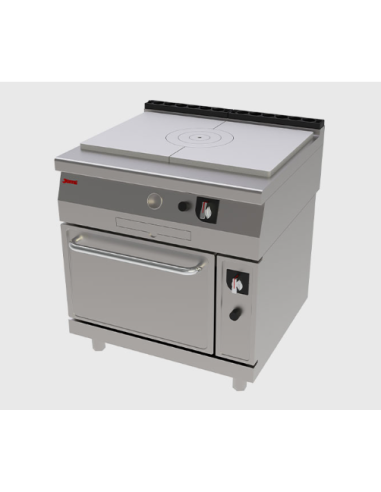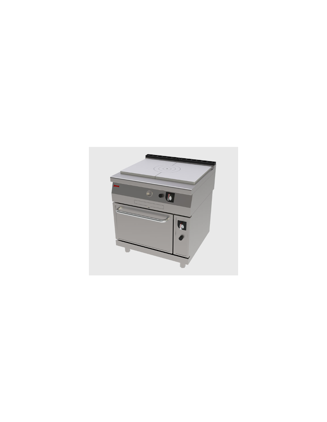Un equipo de cocción eléctrico robusto y completo con dimensiones de 800 x 750 x 850 mm. Ofrece una gran superficie de plancha calentada por 9Kw de potencia, y un horno inferior para asar, calentar o mantener. Su alta potencia y diseño integral lo hacen adecuado para un uso continuo. Requiere una conexión eléctrica industrial (400 V III N + T).