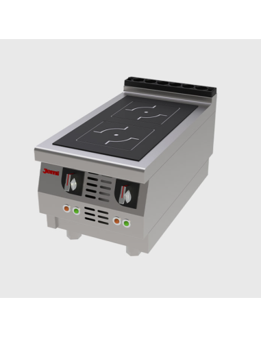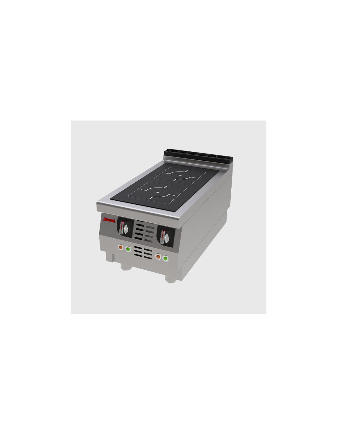 Equipo de cocción de sobremesa de muy alta potencia, alimentado eléctricamente, que utiliza la tecnología de inducción. Su alta potencia permite alcanzar temperaturas de trabajo y recuperar el calor perdido rápidamente. Dispone de dos zonas de 5 Kw, que proporcionan una capacidad de trabajo excepcional. El equipo es de 400 mm de ancho y requiere una conexión eléctrica industrial (400 V III + T).