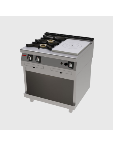 La cocina TP742 de la Serie 750 “Coup de Feu” está diseñada para usos profesionales exigentes. Combina una placa francesa de gran espesor con dos fogones independientes, lo que permite tanto cocciones a fuego indirecto como directas gracias a sus tres aros extraíbles. Su construcción robusta y fondo de 75 cm la hacen ideal para cocinas industriales de alto rendimiento.