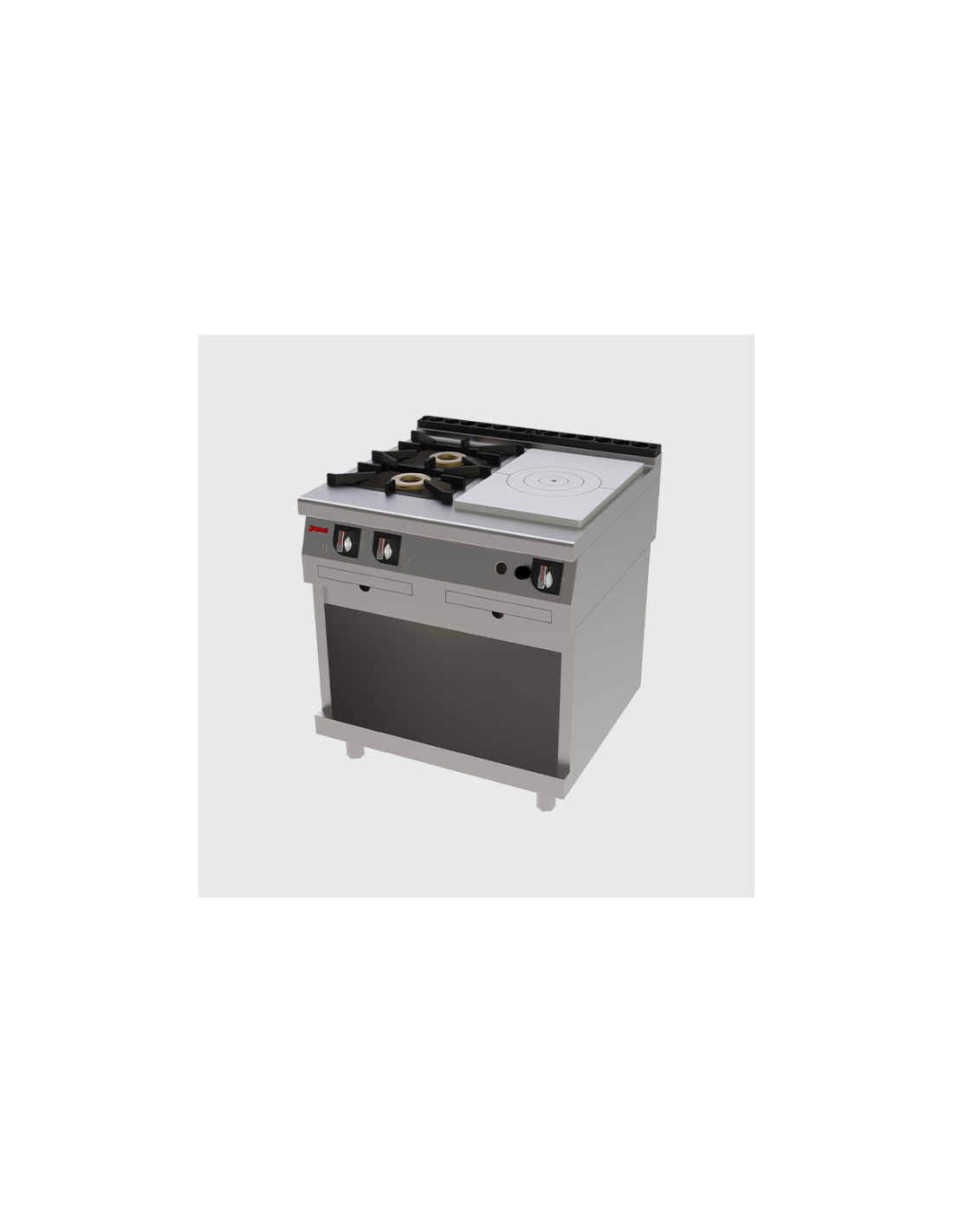 Superficie de cocción: placa laminada de acero de 20 mm de espesor.