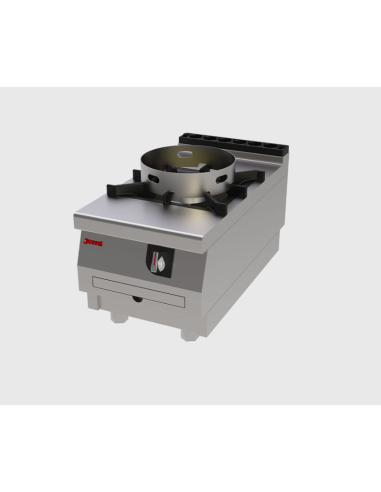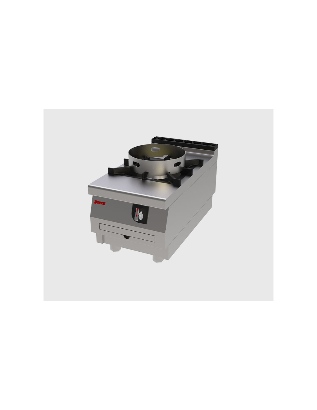 El wok Jemi S715W es una cocina de sobremesa de un quemador, ideal para técnicas de cocción oriental que requieren alta potencia. Con un quemador de fundición especial de 150 mm y 8,4 kW, ofrece un rendimiento excepcional en un formato compacto.