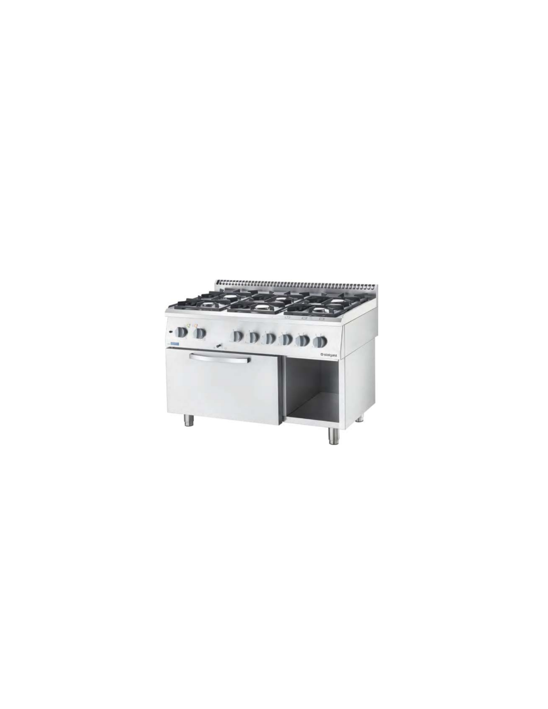 Cocina profesional de 4 quemadores con horno de circuito de calor y armario neutro, diseñada para ofrecer un rendimiento fiable y eficiente en entornos gastronómicos. Su estructura de acero inoxidable y diseño moderno aseguran durabilidad y fácil limpieza. El sistema de seguridad, los quemadores de bajo consumo y el horno con control de humedad permiten un uso seguro, preciso y versátil.