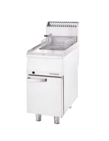 Freidora profesional a gas con cámara de hasta 17 litros de capacidad, equipada con encendido eléctrico, sistema de “zona fría” y control preciso de temperatura. Su diseño garantiza una fritura homogénea y limpia, ya que los residuos se depositan en la zona inferior del aceite, prolongando su vida útil. Incluye cesta de acero inoxidable, contenedor con filtro y patas ajustables, siendo ideal para entornos de restauración exigentes.