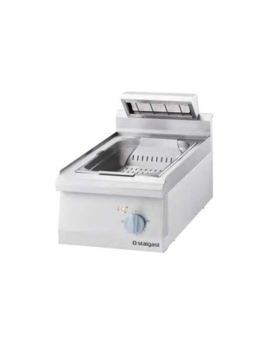 Calientaplatos o baño maría eléctrico diseñado para mantener los alimentos a la temperatura ideal antes del servicio. Fabricado en acero inoxidable con un panel frontal grabado con láser y mandos de control ergonómicos, garantiza un uso cómodo y profesional. Compatible con cubetas GN 1/1 y adaptable a distintas configuraciones de base.