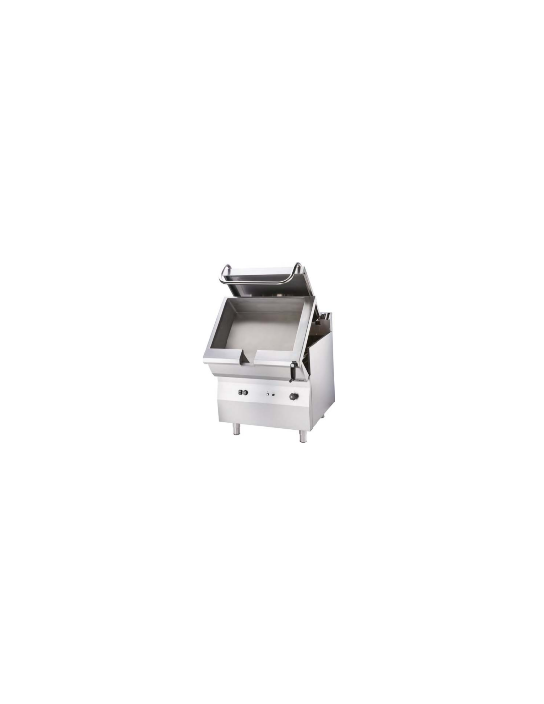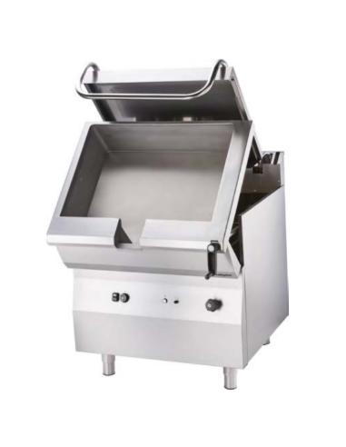 Sartén basculante de gas de diseño moderno, ideal para estofar, cocer y freír. Cuenta con controles ergonómicos, regulación precisa de temperatura (100–300 °C) y sistema de inclinación manual de la cubeta. Su capacidad de 58 L y superficie de trabajo de 0,35 m² lo hacen versátil para cocinas profesionales.