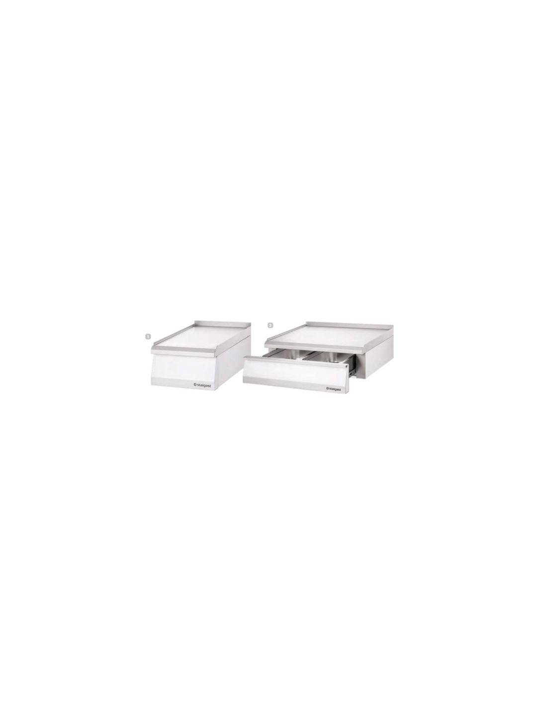 Puesto neutro versátil, diseñado para integrarse en cocinas profesionales. Puede montarse sobre base de marco abierto o con puertas y ofrece la opción de conexión a salida de humos. Algunos modelos incluyen cajón de extracción total para mayor funcionalidad.