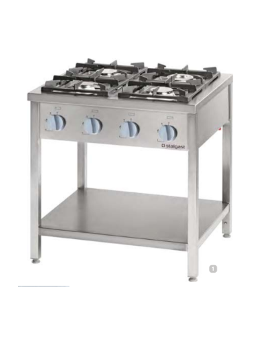 Cocina de gas independiente profesional disponible en versiones de 4 o 6 quemadores. Ofrece distintas configuraciones de potencia para adaptarse a las necesidades de cada cocina, con sistemas de seguridad y eficiencia integrados. Su diseño robusto, con cuencos extraíbles aptos para lavavajillas y patas regulables, garantiza comodidad y durabilidad en entornos de trabajo intensivo.