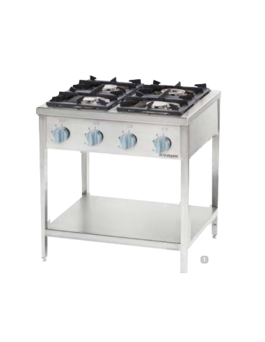 STALGASTCocina de gas profesional de 4 quemadores con estructura atornillada, diseñada para máxima estabilidad y durabilidad. Equipada con rejillas de hierro fundido, llama piloto y cuencos extraíbles aptos para lavavajillas, combina eficiencia, facilidad de limpieza y robustez. Ideal para cocinas industriales y profesionales.