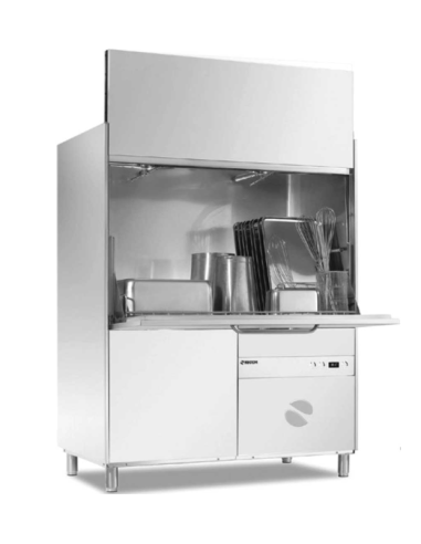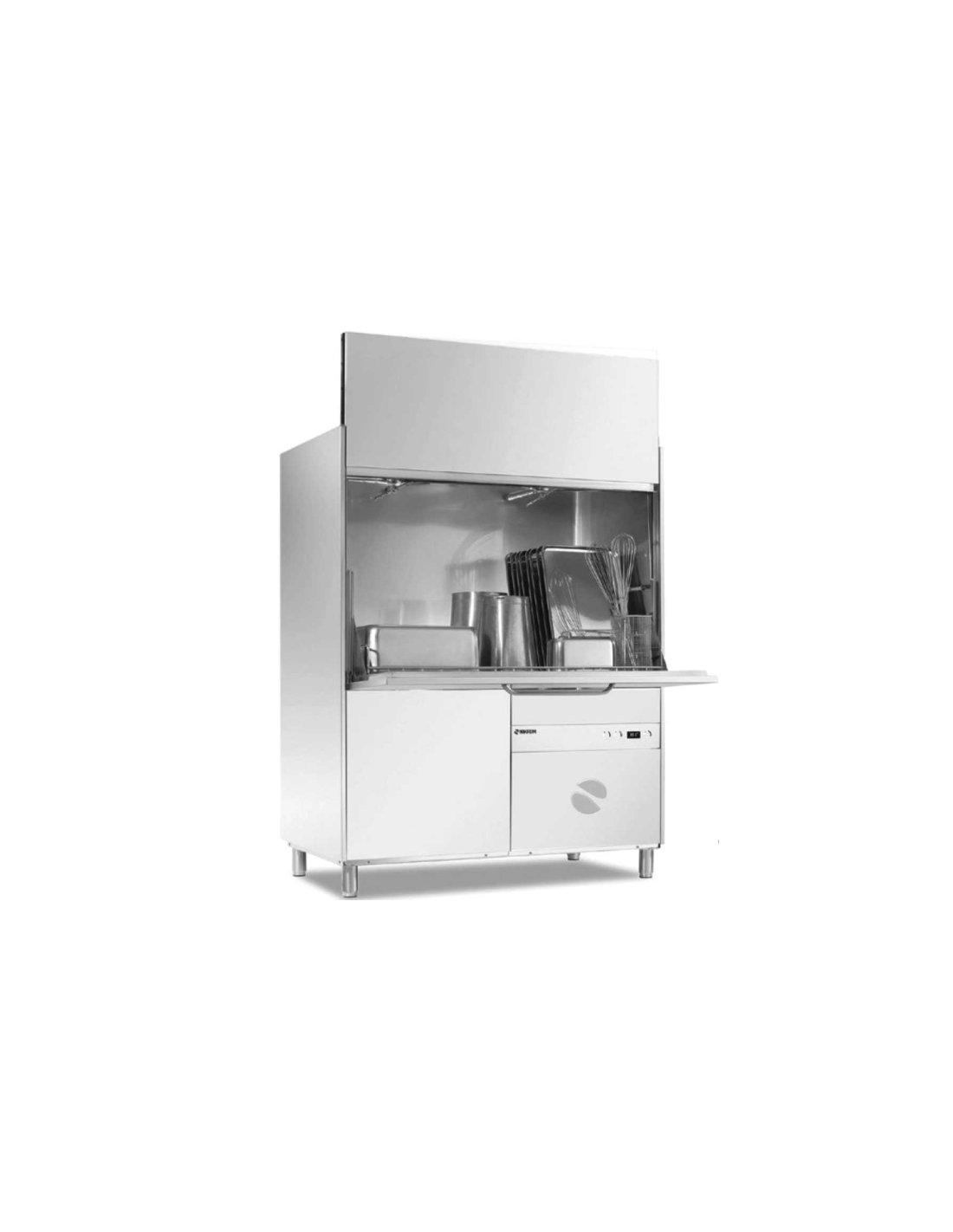 Lavautensilios industrial de gran formato, diseñado para el lavado de utensilios voluminosos, bandejas GN y recipientes de gran capacidad. Su estructura reforzada y su doble pared aislante lo hacen ideal para cocinas centrales, obradores y colectividades con alta demanda de higiene.