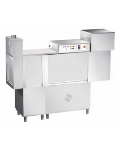 Lavavajillas industrial de arrastre con prelavado, lavado y aclarado, ideal para cocinas profesionales con alto volumen de trabajo. Su diseño permite lavar entre 2700 y 4100 platos por hora, garantizando eficiencia, potencia y resultados óptimos incluso en los entornos más exigentes.
